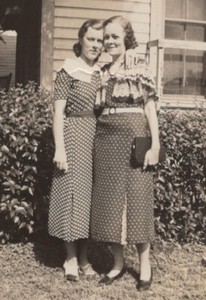 Two Pretty Women Matching Dresses House Outdoors Portrait 1930s