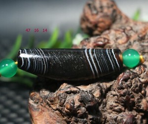 Energy Tibetan old Agate FULL Nautral Silkworm Stripes Big Rich Ox Horn Dzi bead