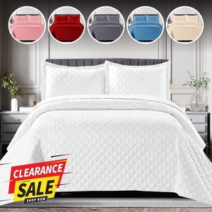 3 Piece Quilted Bedspread Embossed Bed Throw Single Double King Size Bedding Set