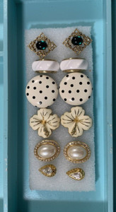 Lot Of 6 Costume Earrings Pierced Teardrop Dangle Gold Tone Faux Pearl Variety