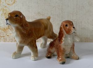 Pair Vintage Cocker Spaniel Ceramic Glazed Dog Figurines