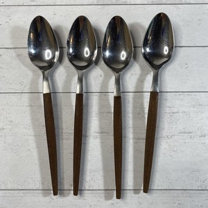 Vintage Ekco Eterna CANOE MUFFIN 4 Teaspoons Stainless Flatware Japan MCM #1