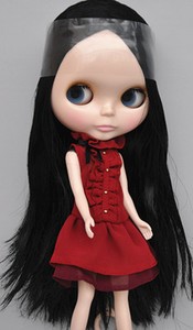 12"Blythe doll Nude Joint Body Black straight Hair carved lips Custom Matte face