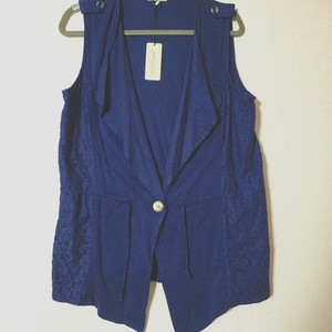 Dress Barn Womens Blazer Sz 2X Long Sleeve Zip Closure Blue w/ Black Trim
