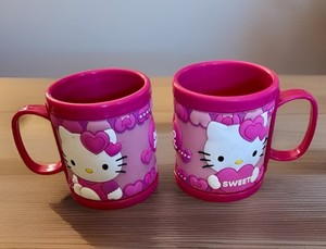 2 Sanrio Hello Kitty Pink Hearts "Sweet" Rubber and Plastic Cups with Handle