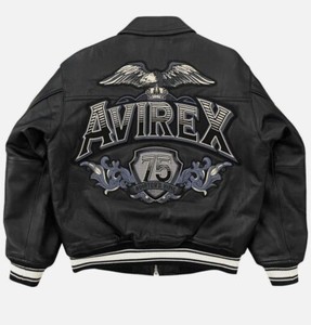 Share Men’s Avirex USA Jacket American Embroidered Cowhide Leather Jacket