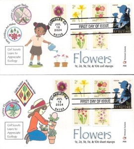 Flowers (2024) FDC set of 2 w/ both sheet &coils- McIntosh Cachets-Girl Scouts