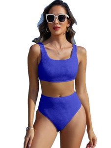 Anrabess NEW Women’s 2 piece Swimsuit Blue Ribbed High Waisted Size MEDIUM