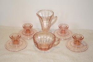 We have been in the Glass business for over 25 years, and we're happy to help you in any way we can. We specilize in selling all types and patterns of Depression Glass, from "Adam to Windsor" as they say. We also sell a variety of Elegant Glassware, a bit of Carnival, and some Roseville and Hull Pottery. Let us know what we can do for you!