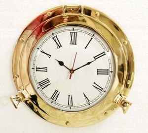 12"Antique Clock Marine Brass Ship Porthole Clock Nautical Wall Clock Decoration