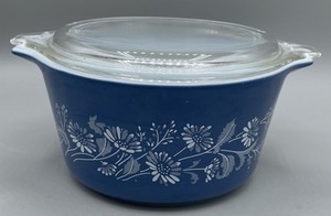 Pyrex Colonial Mist Casserole Dish 473-B w/ Lid 470-C Blue 1 Liter VTG