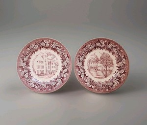 Wedgwood Floral Toile Mulberry Dinner Plates Set ~ France Hall & Music Hall