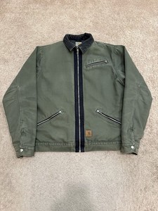 Vintage Carhartt Army Green Sherpa Lined Detroit Jacket Size Medium J297 ARG