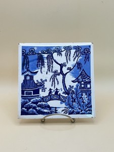Vtg Blue & White Japanese Motif Ceramic Tile/Trivet 6x6" Richards England RARE! RM 43.85Was: RM 54.81