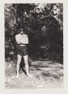 Sexy Handsome Young Man Shirtless Muscular Trunks Unusual Weird Gay Int Old Phot