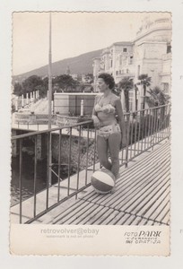 Pretty Attractive Busty Young Woman Beach Bikini Swimsuit Female Lady Old Photo