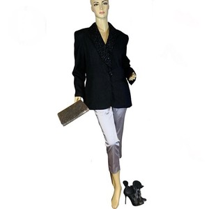 VINTAGE 1990'S CLIO BLACK SYNTHETIC BLEND BEADED SEQUIN BLAZER SIZE 12