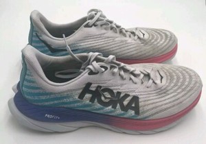 Hoka Men's Mach 5 Size 12D Running Lace Up White/Pink/Blue Sneakers (READ)