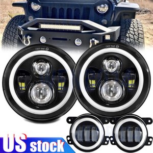 Pair 7" LED Halo Headlights & 4inch Fog Light DRL Kit For Ford Wrangler JK LJ TJ