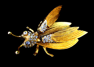 VINTAGE 1950'S RHINESTONE - GOLD TREMBLER BEE BROOCH - USA