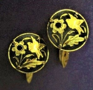 VINTAGE 1950'S "FLOWER & BIRD" TOLEDO DAMASCENE CUFFLINKS - SPAIN