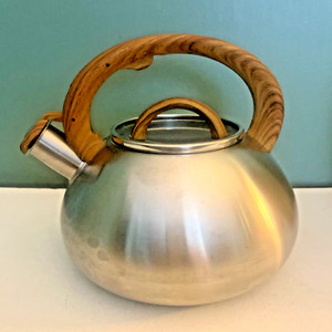 Brandani High Quality Stainless Steel Faux Wood Handle Whistling Teapot Kettle