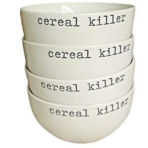 Fabulous Home Cereal Killer Ceramic Bowls White and Black Set of 4