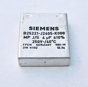 Siemens 4uF 250V MP J/S Capacitor B25221 10% Klangfilm, Crossover 4µF