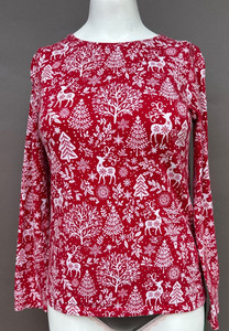 TALBOTS Christmas Top Shirt Red White Reindeer Print M Long Sleeve Cotton Tee