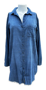 Chelsea & Theodore L Corduroy Shirt Dress Indigo Blue Long Sleeve Button Cotton