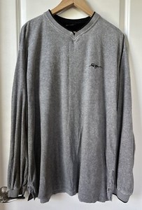 Vintage Fubu Shirt Mens Large Gray Terry Cloth Y2K Spellout V Neck Long Sleeve