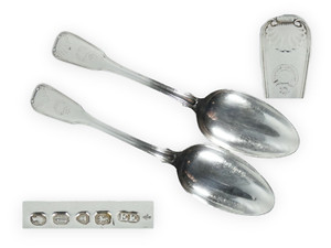Antique Georgian 1830 Pair Channel Islands Jersey Sterling Silver Table Spoons