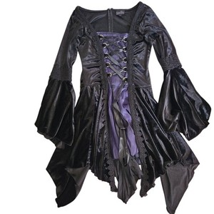 Victorian Velvet Lace Up Corset Dress Trumpet Sleeves Witch Sexy Gothic Sz S