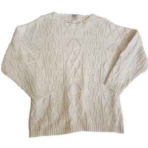 Vintage Cable Knit Cotton Sweater Womens Sz M 90s White Cottage Light Academia