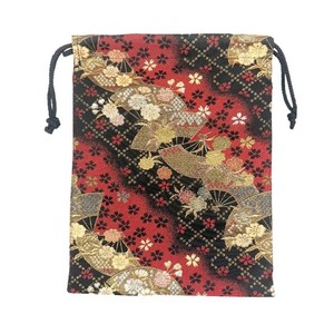 Nishijin Brocade Drawstring Bag (Lined) Phoenix Dragon/Black, Large