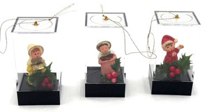 Set 3 Mini Christmas Figurine Ornaments Carolers Santa in Display Boxes Vintage