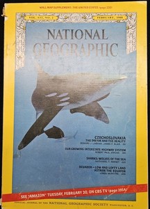 National Geographic February 1968. Shark poster intact, no Supplemental map