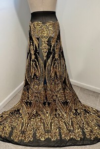 Gold Black 4way stretch sequins Embroidery Mesh Lace fabric 50” Width 1 Yard
