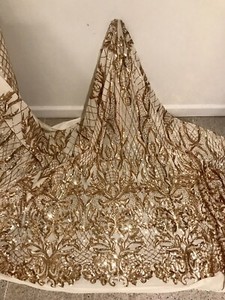 Gold 4way stretch sequin Lace fabric 50” Width Sold By The Yard