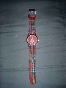 Vintage Macy's Holiday Christmas Red Silver Plaid Strap Wrist Watch
