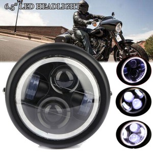 Universal LED 6.5" Black Motorcycle Headlight Hi/Lo Beam Lamp For Cafe Racer 12V