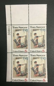 #1470 Tom Sawyer 8 Cent COLOR SHIFT Plate block of 4 MINT NH OG