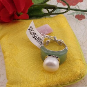 Kwan Collections Green Jade White Cultured Pearl Sterling Silver Size 9.5 Ring