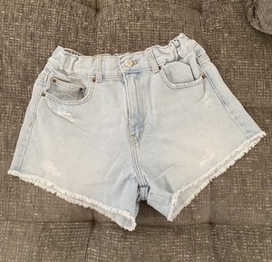 Zara Girls Cut Off Distressed Denim Shorts Front Dots Light Wash 11-12