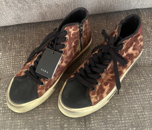 NWT Zara Man Sneakers Men’s Sz 40 - US 7 Leopard Calf Hair High Tops