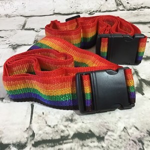Luggage Straps Set Of 2 Rainbow W Blank Luggage Tags Black Plastic Buckles 74”